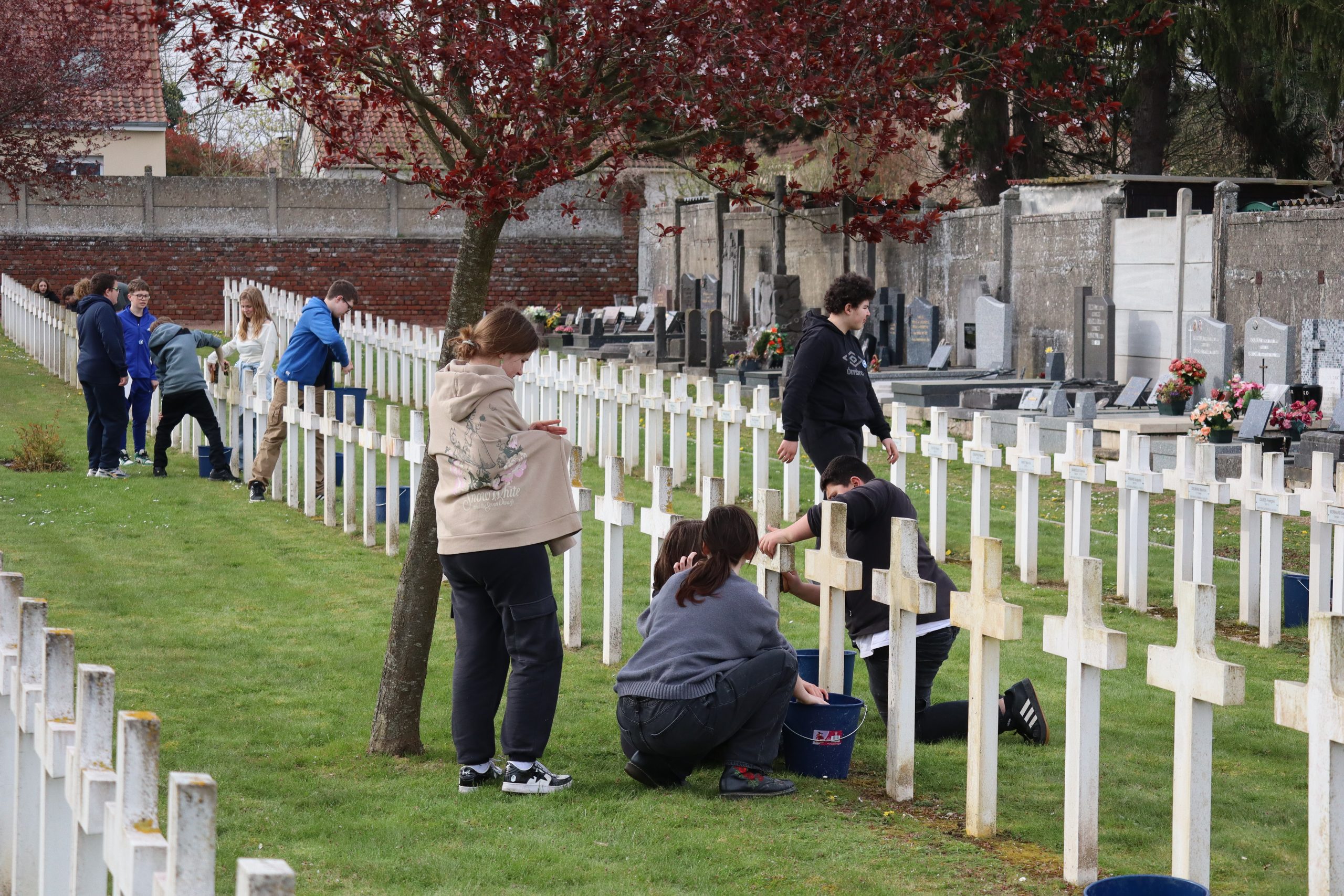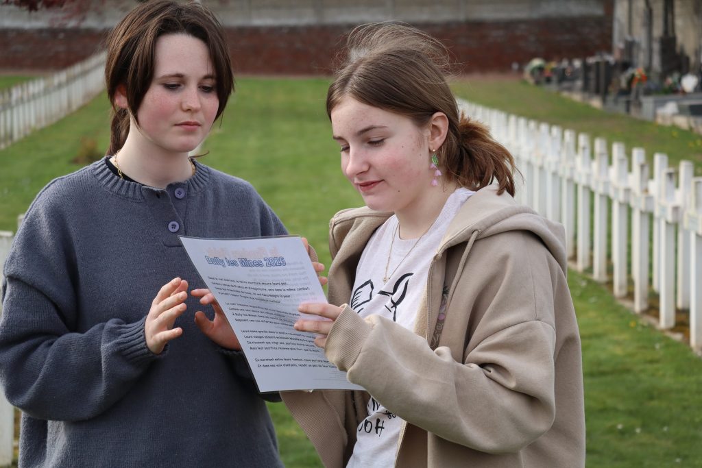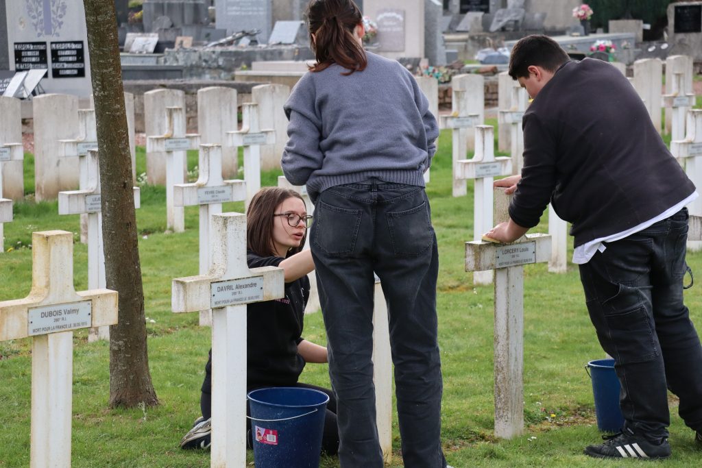 Après une visite guidée du site historique, les jeunes élèves ont participé à l’entretien des sépultures. Suite à ce geste de citoyenneté les collégiens âgés de 12 à 14 ans ont déposé une gerbe de fleur et ont honoré le sacrifice des soldats français avec une minute de silence, une lecture de poème rédigé par la main de trois des ces adolescents, puis en concluant par la Marseillaise.