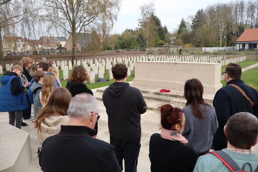 La visite s’est poursuivie avec un hommage dans le quartier britannique avec la lecture de deux élèves du poème Flanders Fields de John McCrae. Dix collégiens proviennent de l’atelier mémoire défense citoyenneté, tandis que les 10 autres élèves sont en ULIS (Unité Localisées pour l’Inclusion Scolaire). Cette opération a permis de perpétuer le devoir de mémoire de façon active. Le devoir de mémoire et la transmission demeurent des axes de travail majeurs dans notre commune avec le concours des enseignants, des associations locales : Gardes d’Honneur de Lorette et l’Union des Anciens Combattants et Victimes de Guerre.