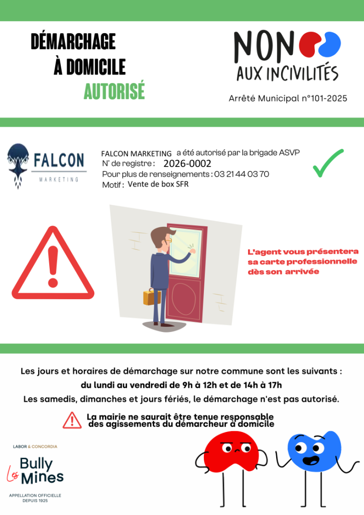La Société Falcon Marketing a été autorisée à réaliser un démarchage du vendredi 6 mars 2026 au vendredi 13 mars
