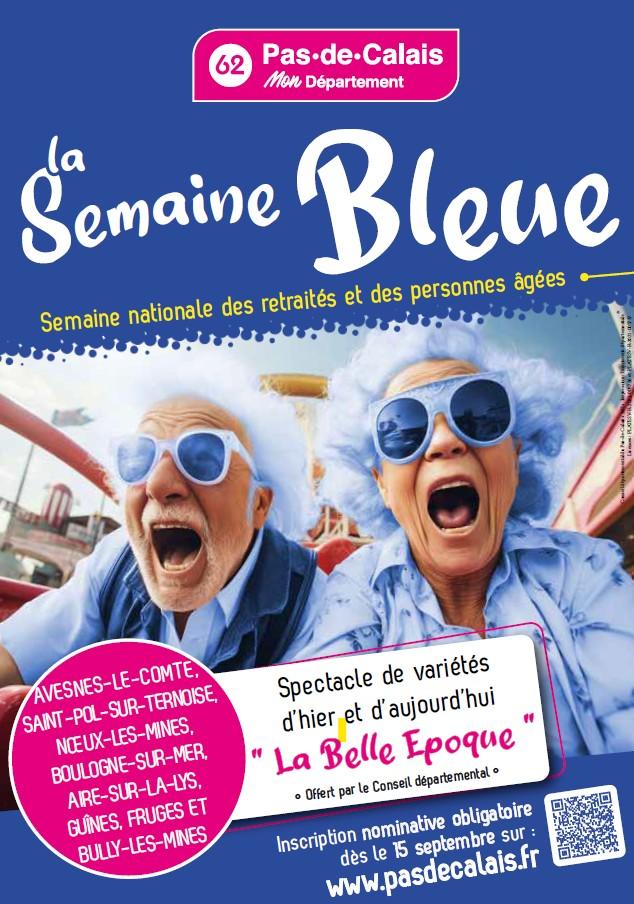Dans le cadre de la Semaine bleue, le Département a fait le choix, en plus de ses missions obligatoires, d’organiser à destination des personnes âgées un spectacle dont les représentations, gratuites, tourneront sur l’ensemble des territoires. Il s’agit du spectacle de variétés d’hier et d’aujourd’hui « La belle époque » du club Léo-Lagrange.